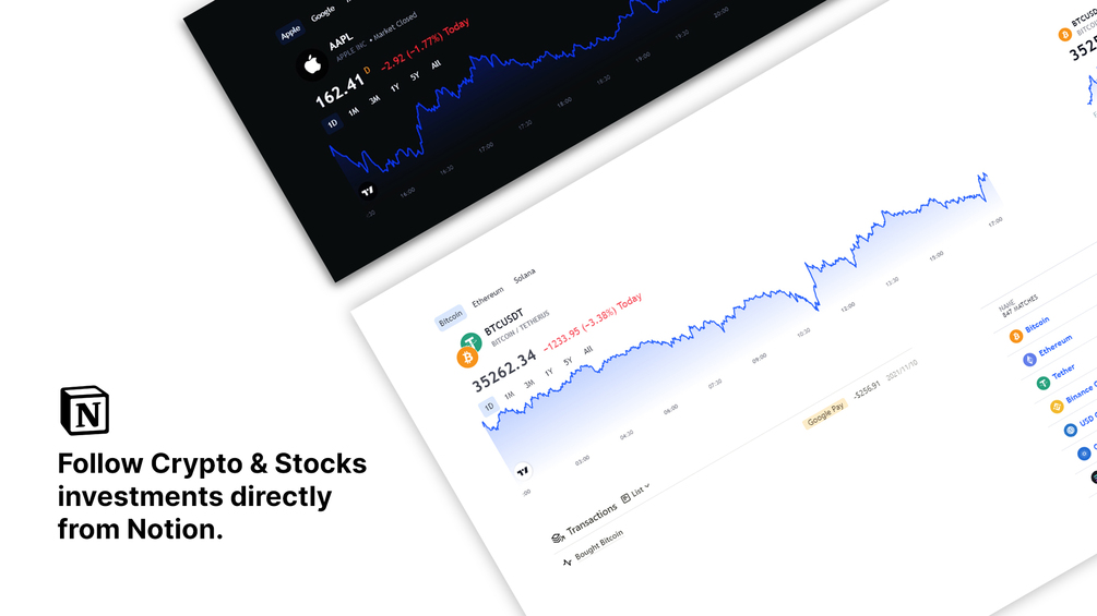 I realized a pro version for you. A dynamic stocks dashboard will show you an overview of all of your investments, so you can easily follow market trends directly from Notion.