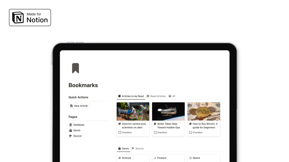 Don't miss important news or articles, save them with a click in your Notion library and read them whenever you want.