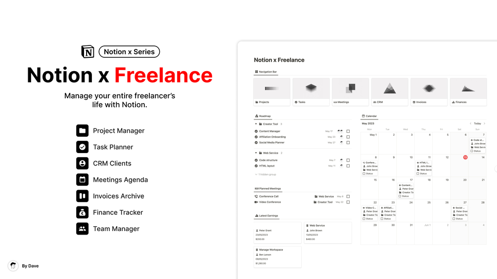 Get a unique tailored template for your agency, freelance activity, or studies to enhance your organization and productivity.