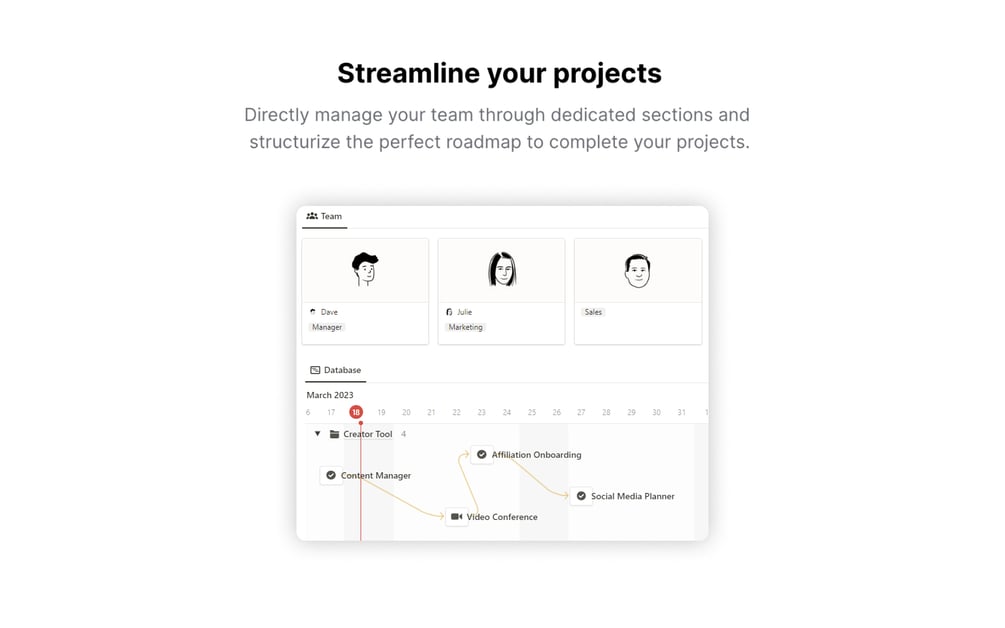 The Teams version allows you to manage all your teams and structure the work for them. Each one has a dedicated workspace where he can manage their projects and tasks.