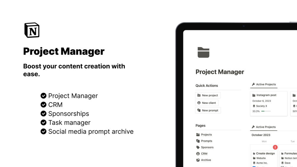 Get a unique tailored template for your agency, freelance activity, or studies to enhance your organization and productivity.