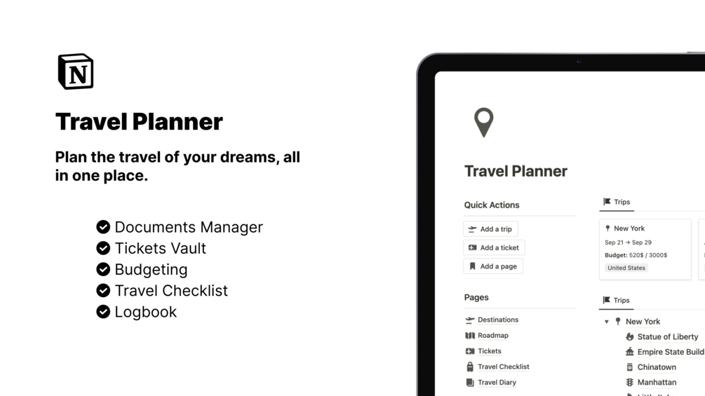 Schedule your next travel, and save tickets and documents in one place. Manage the expenses during the journey, create a road map of the best places to visit, and take everything you need with you without forgetting anything thanks to the travel checklist.